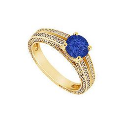 Sapphire and Diamond Engagement Ring : 14K Yellow Gold - 3.00 CT TGW