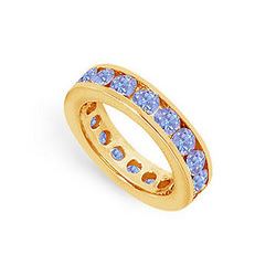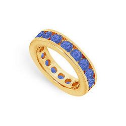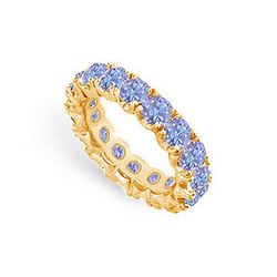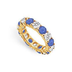 Diamond and Blue Sapphire Eternity Band : 14K Yellow Gold – 5.00 CT TGW