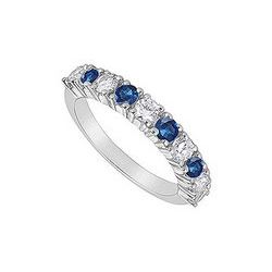 Five brilliant-cut diamonds alternate with five deep blue sapphires. Prong-set in 14K white gold this ring has a total gem weight (TGW) of 1.00 ct.