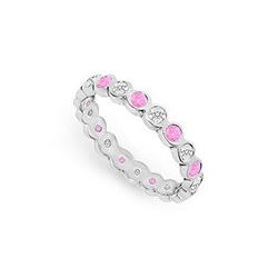 Pink Sapphire and Diamond Eternity Band : 18K White Gold – 1.00 CT TGW