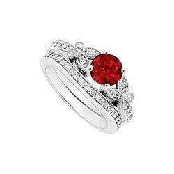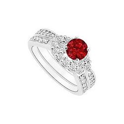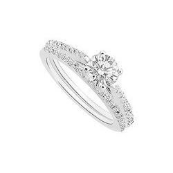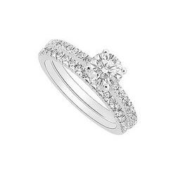 Diamond Engagement Ring with Wedding Band Set : 14K White Gold - 0.75 CT Diamonds