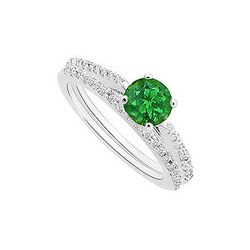 Emerald and Diamond Engagement Ring with Wedding Band Set : 14K White Gold - 0.75 CT TGW