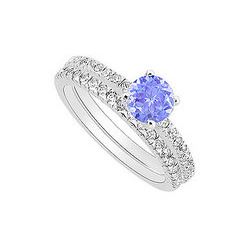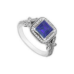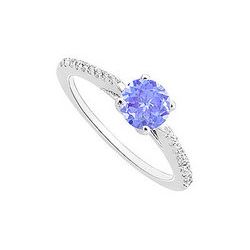 14K White Gold : Tanzanite and Diamond Engagement Ring 1.00 CT TGW