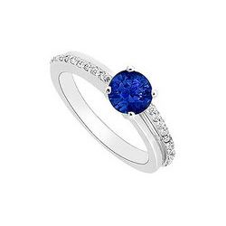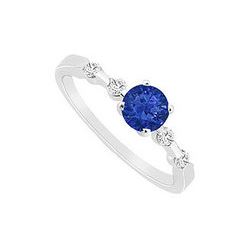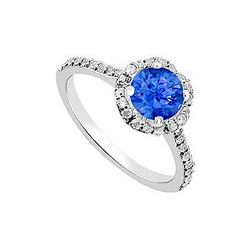 Sapphire and Diamond Engagement Ring : 14K White Gold - 0.75 CT TGW