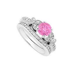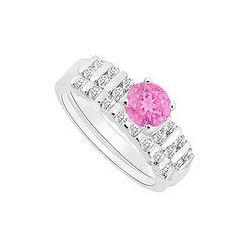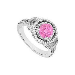 14K White Gold Pink Sapphire & Diamond Engagement Ring 1.00 CT TGW