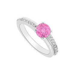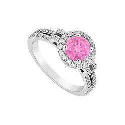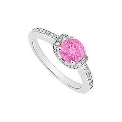Pink Sapphire and Diamond Engagement Ring 14K White Gold 1.00 CT TGW