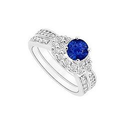 14K White Gold Blue Sapphire & Diamond Engagement Ring with Wedding Band Sets 1.15 CT TGW