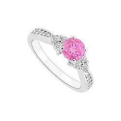 Pink Sapphire and Diamond Engagement Ring : 14K White Gold - 0.75 CT TGW