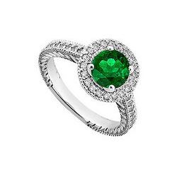 This versatile engagement ring with bigger center-set emerald is encircled by smaller round diamonds. Other round diamonds are set in between rope des