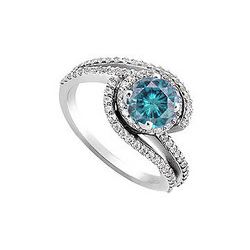 Blue and White Diamond Engagement Ring 14K White Gold 1.10 CT TDW