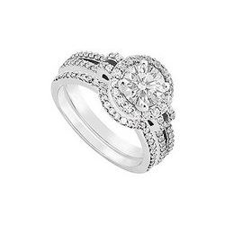 14K White Gold Diamond Engagement Ring with Wedding Band Sets 1.15 CT TDW