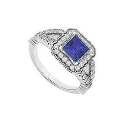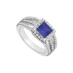 14K White Gold Princess Cut Sapphire & Diamond Engagement Ring 1.25 CT TGW