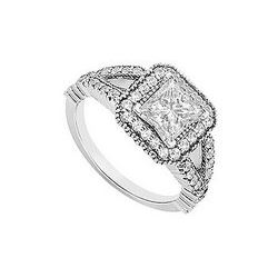 14K White Gold Princess Cut Diamond Engagement Ring 0.75 CT TDW