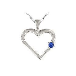 Sapphire Heart Pendant : 14K White Gold - 0.05 CT TGW