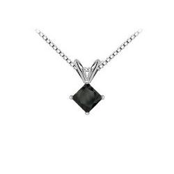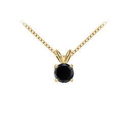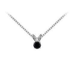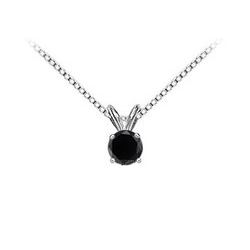 A round black diamond is delicately suspended in a rich 14K white gold 4-prong mounting. This black diamond solitaire pendant has a total weight (TDW