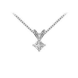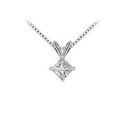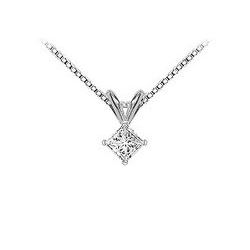 18K White Gold : Princess Cut Diamond Solitaire Pendant – 0.25 CT. TDW.