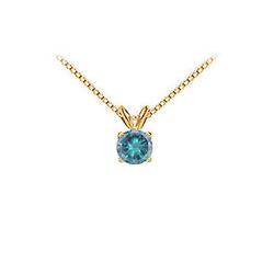 A round blue diamond is delicately suspended in 14K white gold 4-prong mounting. This blue diamond solitaire pendant has a total weight (TDW) of 2.00