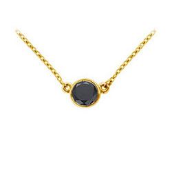 A round black diamond is delicately suspended in a rich 14K white gold bezel-setting. This black diamond solitaire pendant has a total weight (TDW) o