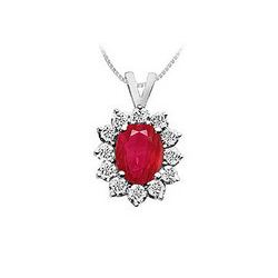 Ruby and Diamond Pendant : 14K White Gold - 0.75 CT TGW