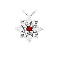 Ruby and Diamond Star Pendant : 14K White Gold - 0.66 CT TGW