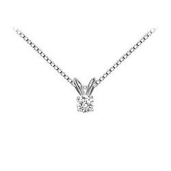 18K White Gold : Prong Set Round Diamond Solitaire Pendant – 0.15 CT. TDW.