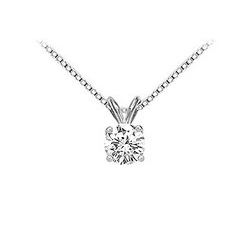 18K White Gold : Prong Set Round Diamond Solitaire Pendant – 0.75 CT. TDW.