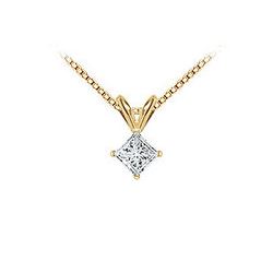 18K Yellow Gold : Princess Cut Diamond Solitaire Pendant – 0.50 CT. TDW.