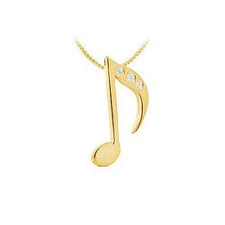 Diamond Music Note Pendant : 14K Yellow Gold - 0.02 CT Diamonds