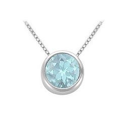 Created Aquamarine Bezel-Set Solitaire Pendant : .925 Sterling Silver - 1.00 CT TGW