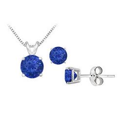 Sapphire Solitaire Pendant with Earrings Set in Sterling Silver 2.00 CT TGW