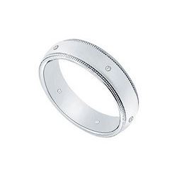 4MM Milgrain Wedding Band with Diamonds : 14K White Gold - 0.05 CT TDW