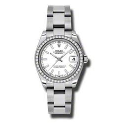 Model: 178384-WHIO - CASE = [Material:Stainless Steel], [Case Diameter:31], [Bezel:46 Diamonds set on 18K White Gold Domed], [Case Back:Solid],