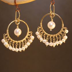 Metal: SilverHammered circles with ivory pearlswrapped around, about 1-1/2" long Available in either 14K gold-filled, rose gold-filled, or ster...