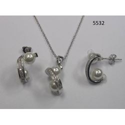 Five Piece Set containing 18" Necklace with matching earring as well as Three Pairs of Earrings All Gold Electroplated with Cubic Zirconia and ...