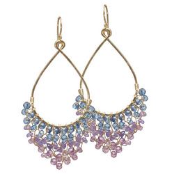 Metal: Gold Hammered hoops wrapped with peridot, citrine, mandarin garnet, pink ruby, aquamarine, amethyst, and blue topaz, about 2" long. ...
