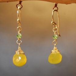 Metal: SilverPeridot and sea blue chalcedony on curly posts, about 1-1/4" long.Available in either 14K gold-filled, rose gold-filled, or sterli...
