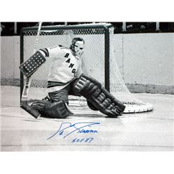 Ed Giacomin Signed New York Rangers 16X20 B&W Photo HOF 87