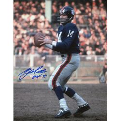 Y.A. Tittle Signed New York Giants Blue Jersey Passing Vertical 16X20 Photo HOF 71
