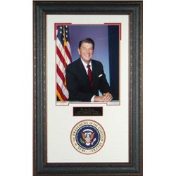 Ronald Reagan Unsigned 14X20 Engraved Signature Series Leather Framed W/ Presidential Seal (Politics