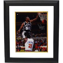 David Robinson Signed San Antonio Spurs 16X20 Photo Custom Framed Dunk Over Wilkins