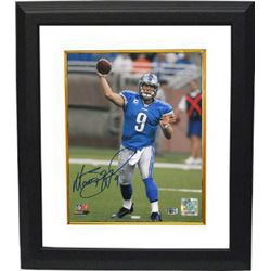 Matthew Stafford Signed Detroit Lions 8X10 Photo Custom Framed (Blue Jersey Passing)- Stafford Holog