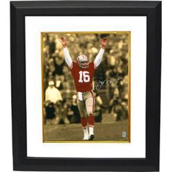 Joe Montana Signed San Francisco 49Ers 16X20 Photo Custom Framed (Sepia Spotlight Arms Up)- Montana