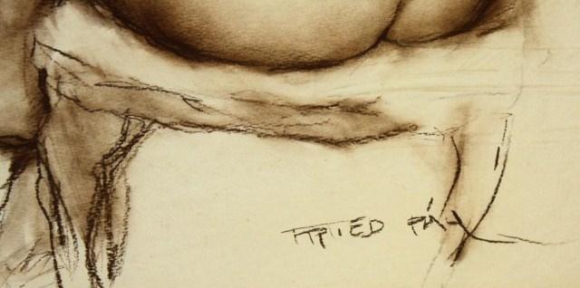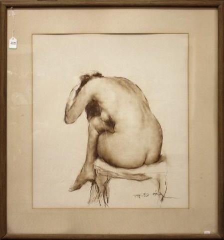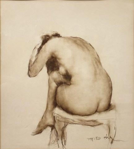 Water Color & Pencil Signed "Pal Fried" (Pal Fried: Hungarian/American 1893-1976). A nude woman. Viewing area 23" x 26". Framed 33" x 36". Pal Fried, (1893-1976), Hungarian American artist, was born in Budapest and studied at the Hungarian Academie under Professor Hugo Pohl and in Paris under Claude Monet and Lucien Simone. Under Pohl's influence, he executed many portraits, nudes and Oriental scenes in pastel. He was also greatly influenced by the French Impressionist School of Renoir and Degas. His works are listed in the Fine Arts Book.