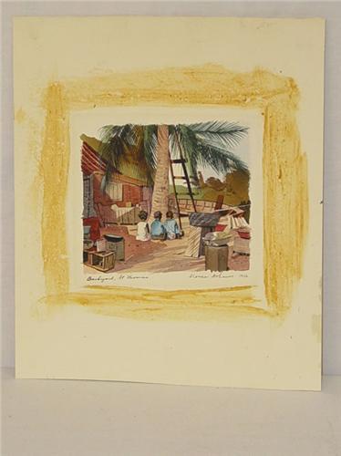 WATERCOLOR-GAUCHE TITLED "BACKYARD ST. THOMAS" SIGNED STEVAN DOHANOS, UNFRAMED (5 3/4" X 5 3/4")