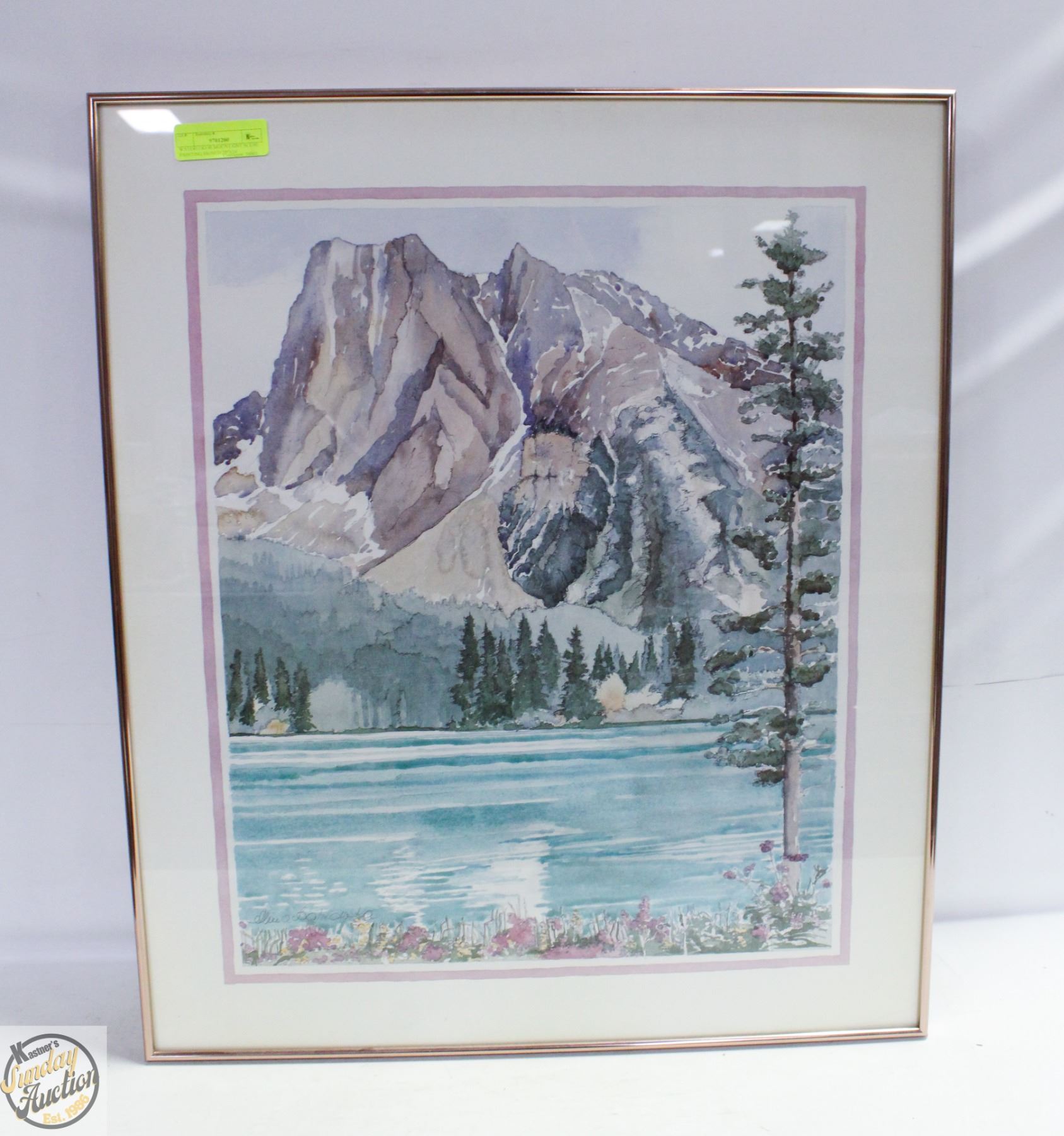 WATERCOLOR MOUNTAINT SCENE PAINTING SIGNED 29"X24
