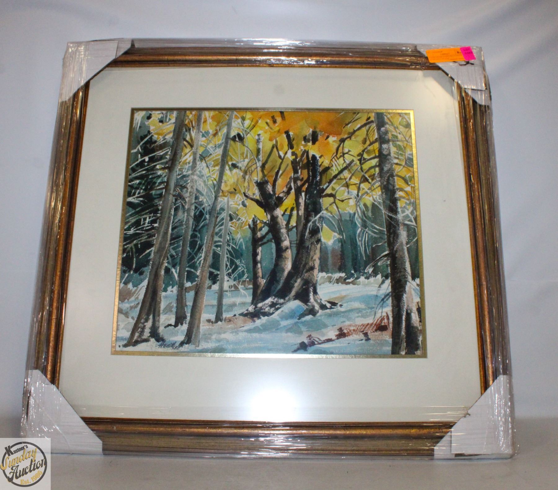 WATERCOLOR PAINTING FOREST NOT SIGNED 24"X24"