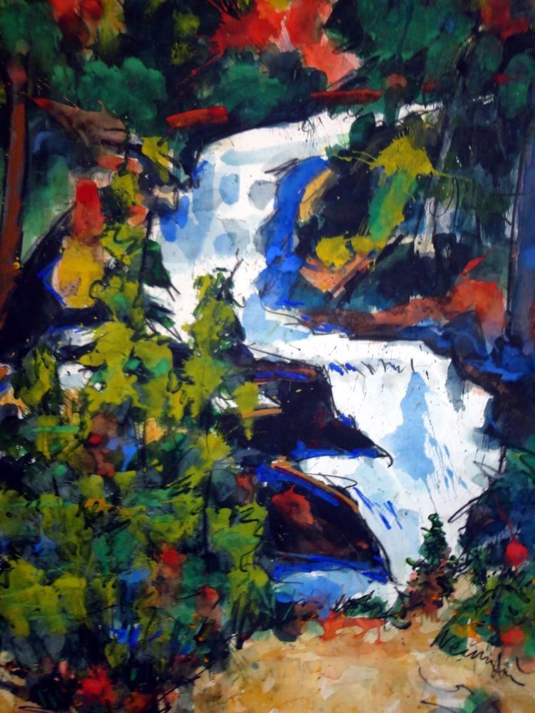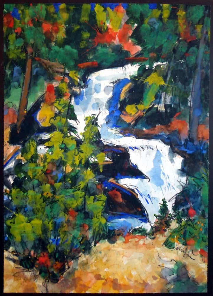 DANIEL NEUMANN | Title of Art: WATERFALL | Medium: SIGNED ORIGINAL WATERCOLOR ON PAPER | Edition Size: Original | Art Size: 40x28 | Offered Unframed