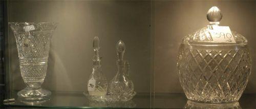 WATERFORD 12" PUNCHBOWL with cover, WATERFORD VASE and MISMATCHED CRUET SET, condition: punchbowl and vase excellent, cruet as-is, PACKING AND SHIPPING (excluding insurance) $40,