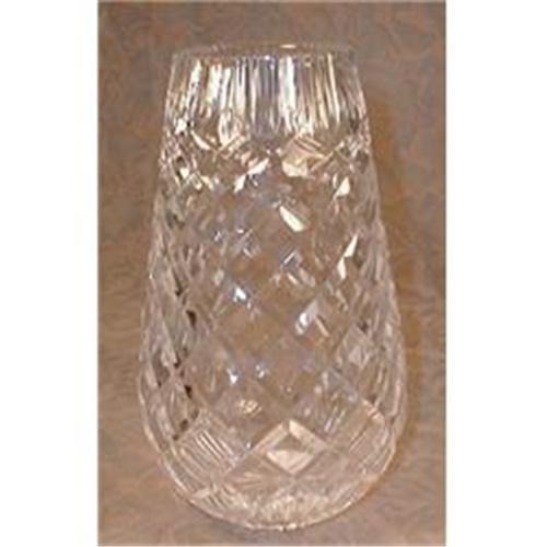 Cut crystal vase by Waterford. Roly-poly (sort of) base with sides