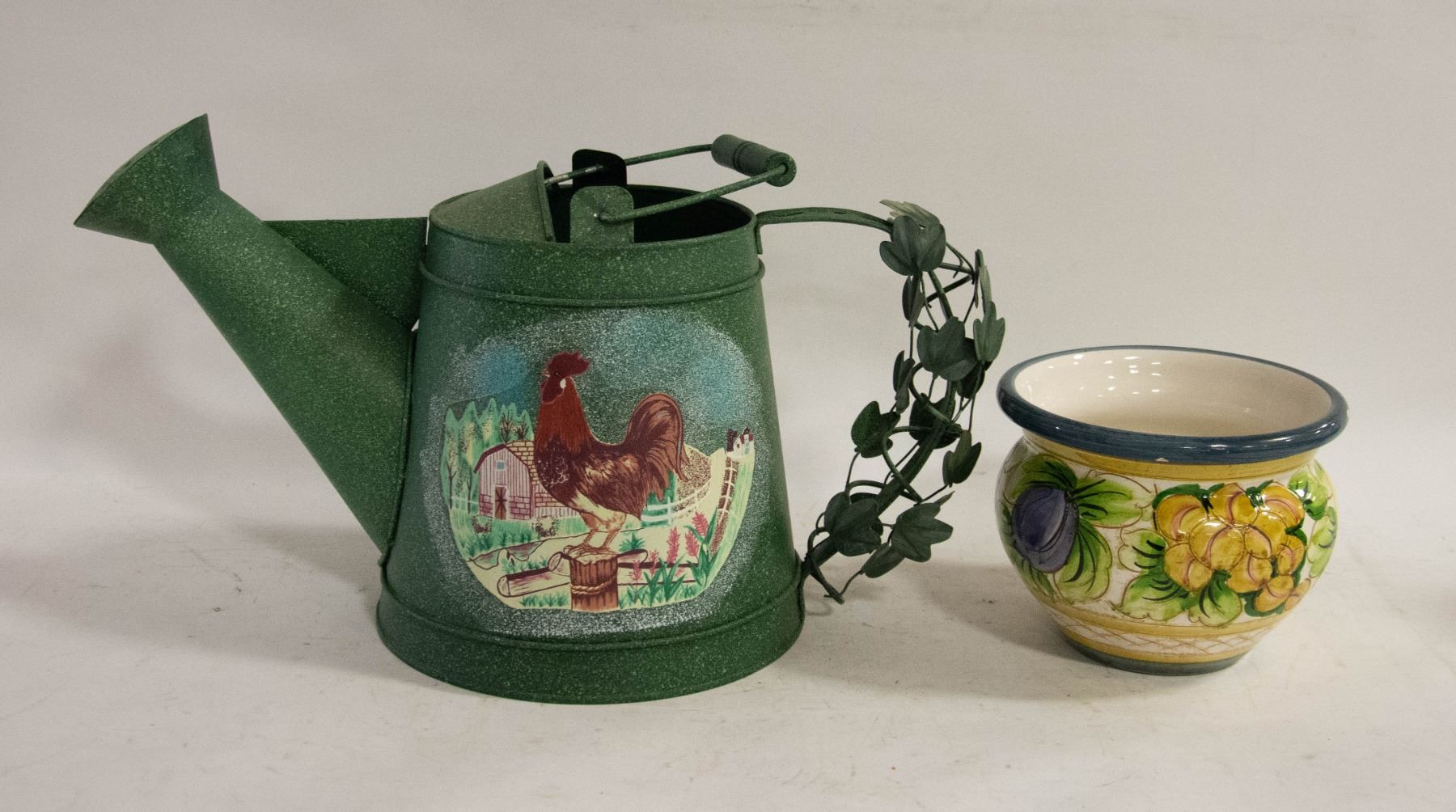 VINTAGE METAL COUNTRY ROOSTER WATERING CAN & HAND PAINTED CERAMIC PLANT POT MADE IN ITALY. *CHIPPED ON THE RIM* **ALL ITEMS MUST BE REMOVED BY 5PM SATURDAY, MAY 20TH 2023. ALL REMAINING ITEMS WILL BE SUBJECT TO A $6.00 PER DAY STORAGE CHARGE. ANY ITEMS REMAINING AFTER MONDAY, JUNE 5TH, 2023 WILL BE CONSIDERED FORFEITED. NO REFUNDS WILL BE ISSUED FOR FORFEITED ITEMS. TO SCHEDULE A PICK UP APPOINTMENT CLICK HERE
